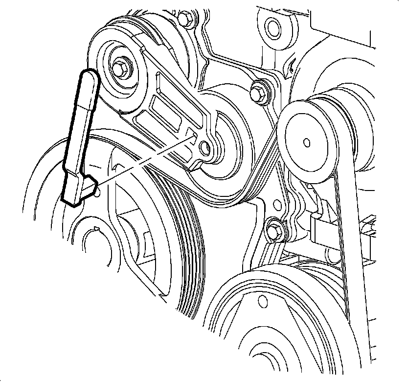 3. Install the J 44811 onto the tensioner and unload spring tension from the tensioner while positioning the belt.