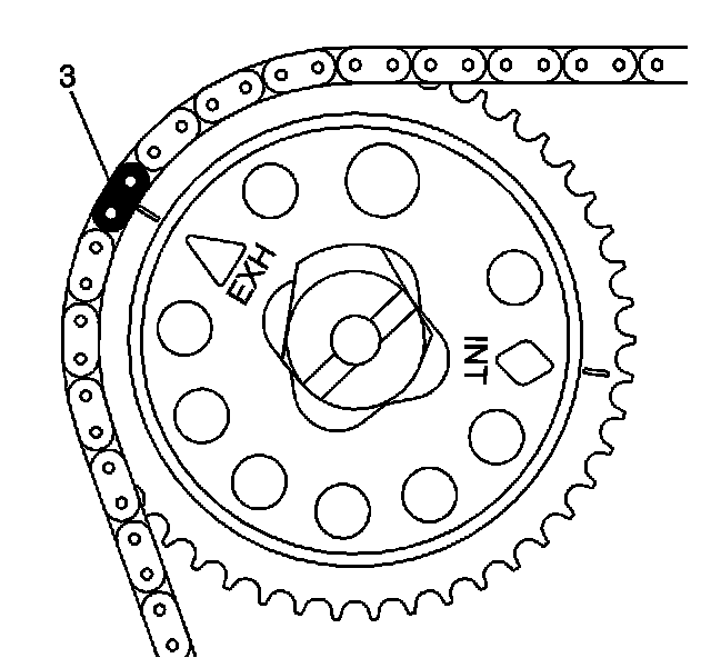 There are three colored links on the timing chain. Two links are of matching color and one link is of a unique color. Use the following procedure to line up the links with the sprockets. Orient the chain so that the colored links are visible.