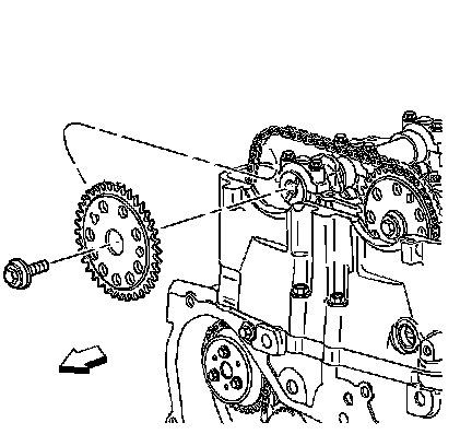Install the exhaust camshaft sprocket and a new bolt loosely onto the exhaust camshaft.