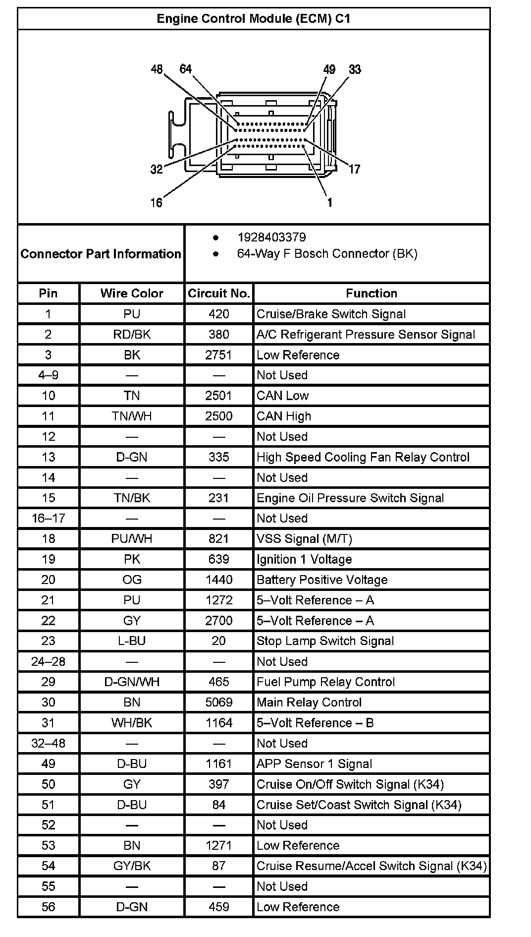 Engine Control Module (ECM) C1 (Part 2):