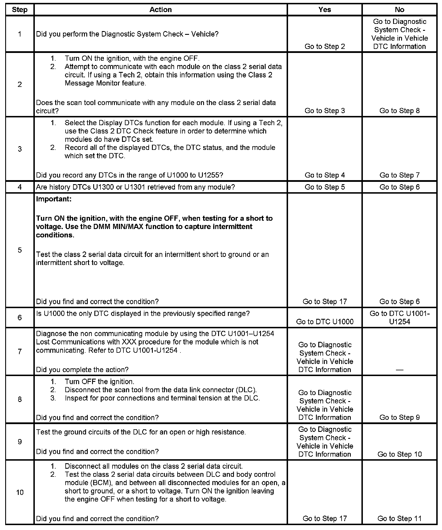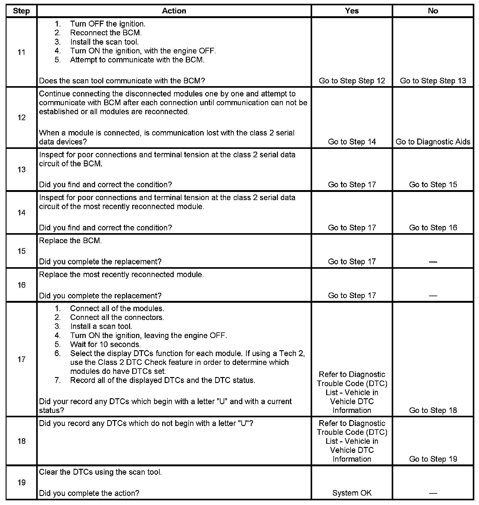2. A partial loss of communication in the class 2 serial data circuit uses a different procedure than a total loss of communication of the class 2 serial data circuit.