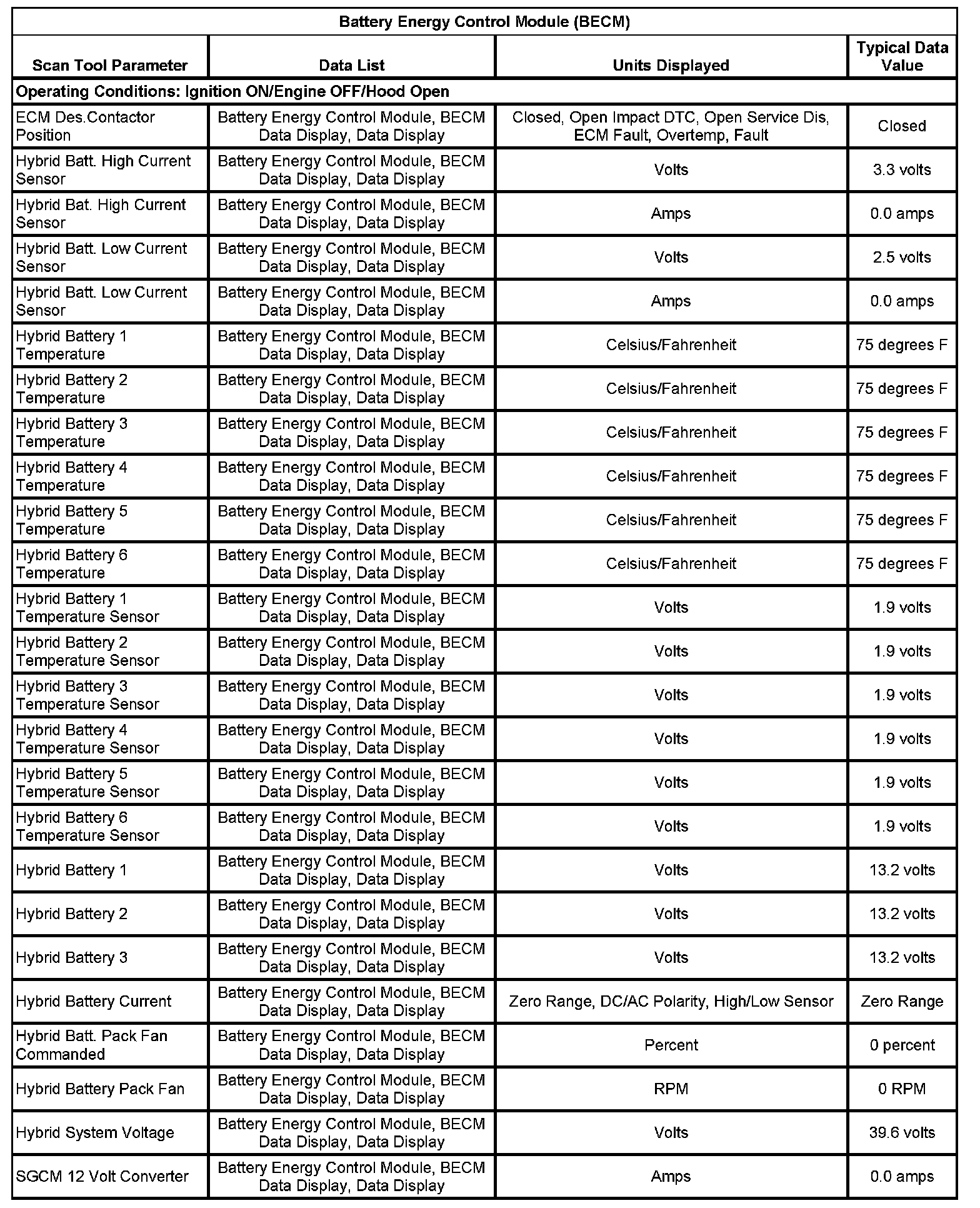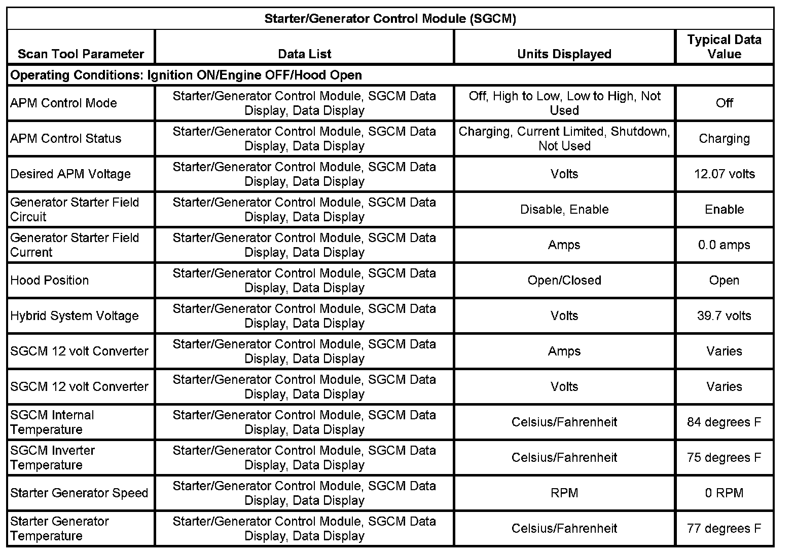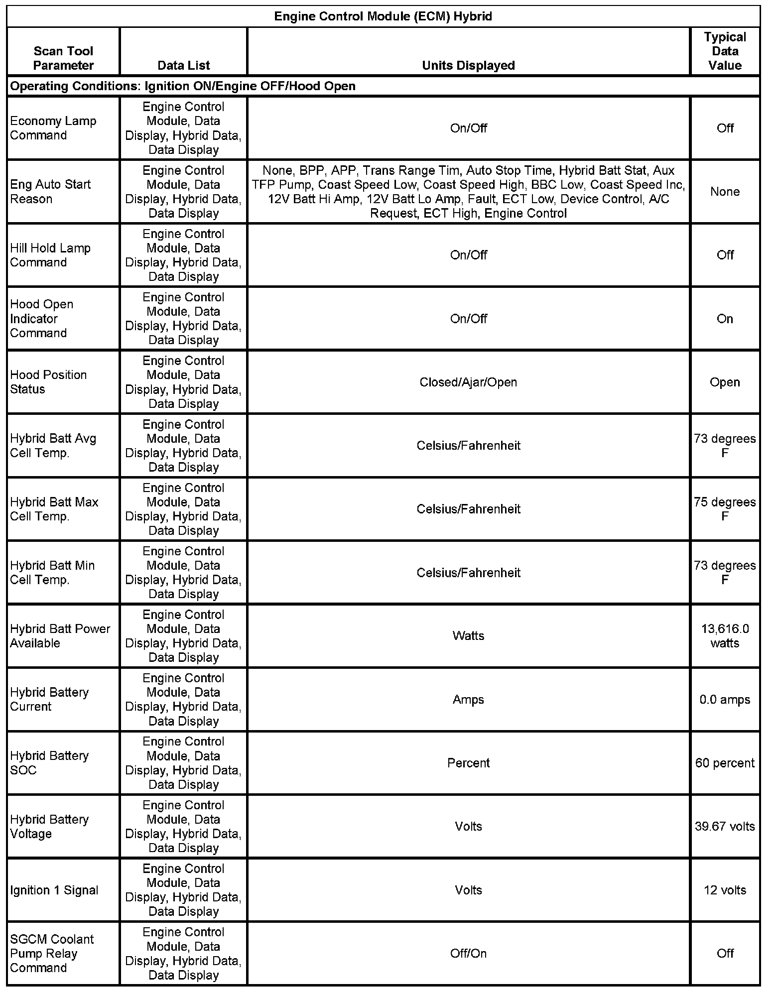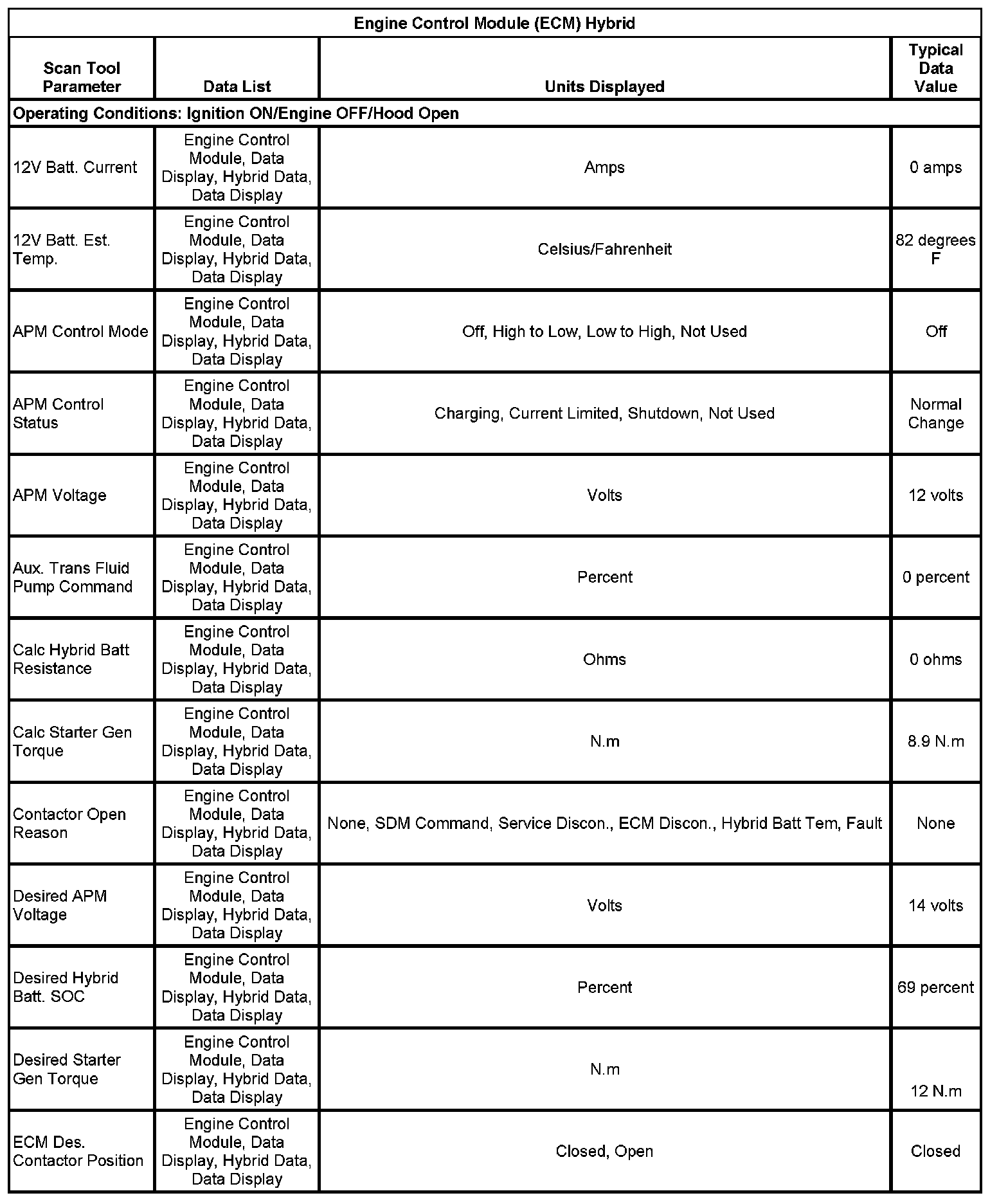 Scan Tool Data List - Hybrid Controls