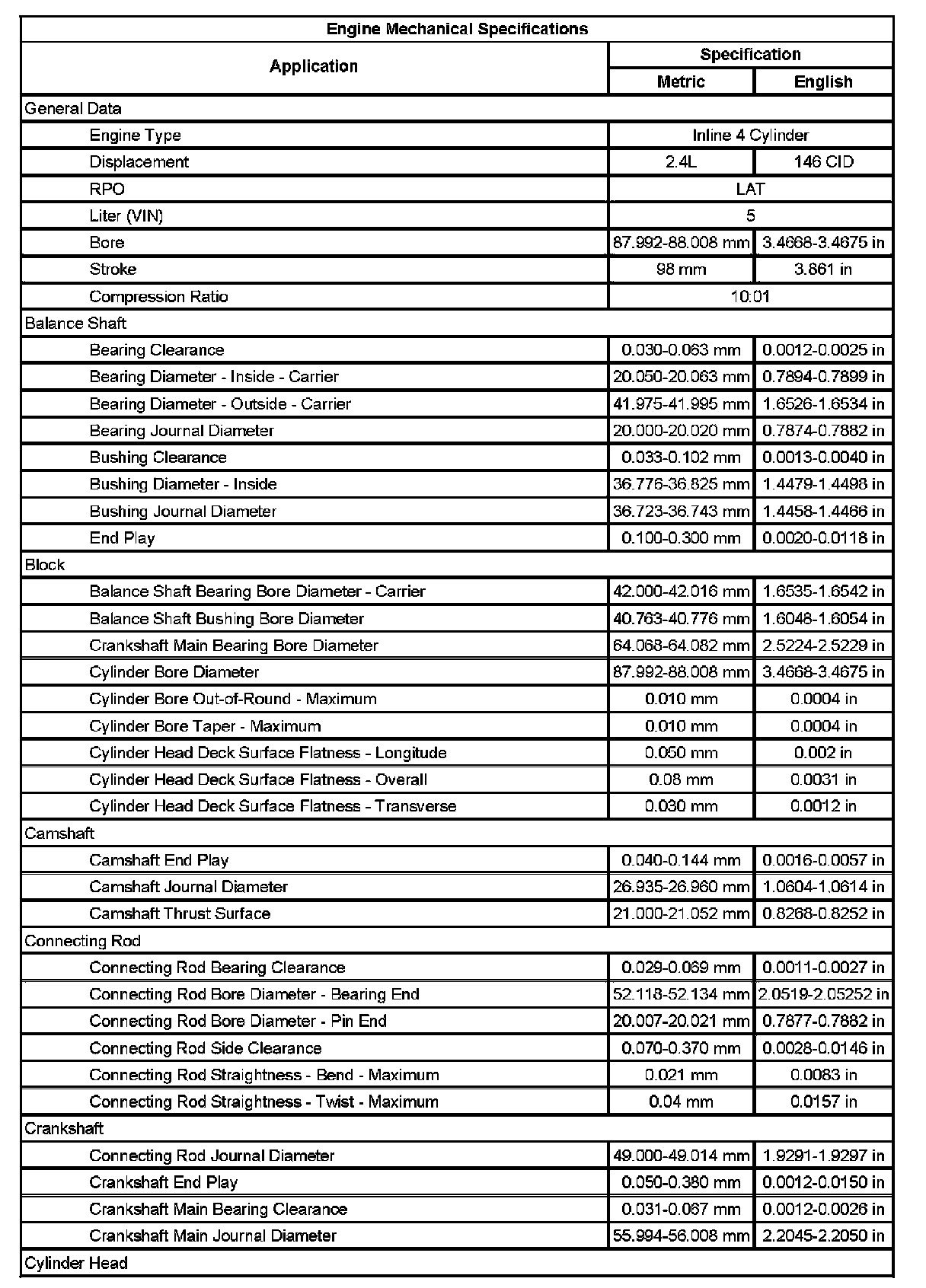 Engine Mechanical Specifications (Part 2):