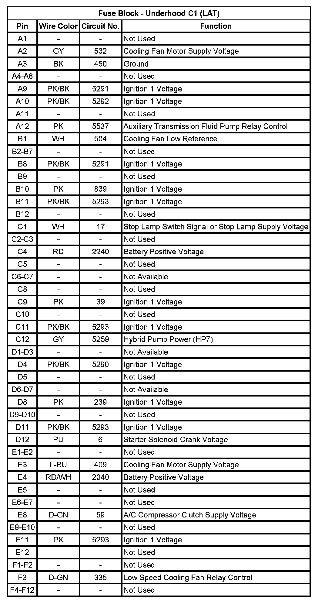 Fuse Block - Underhood C1 (LAT)