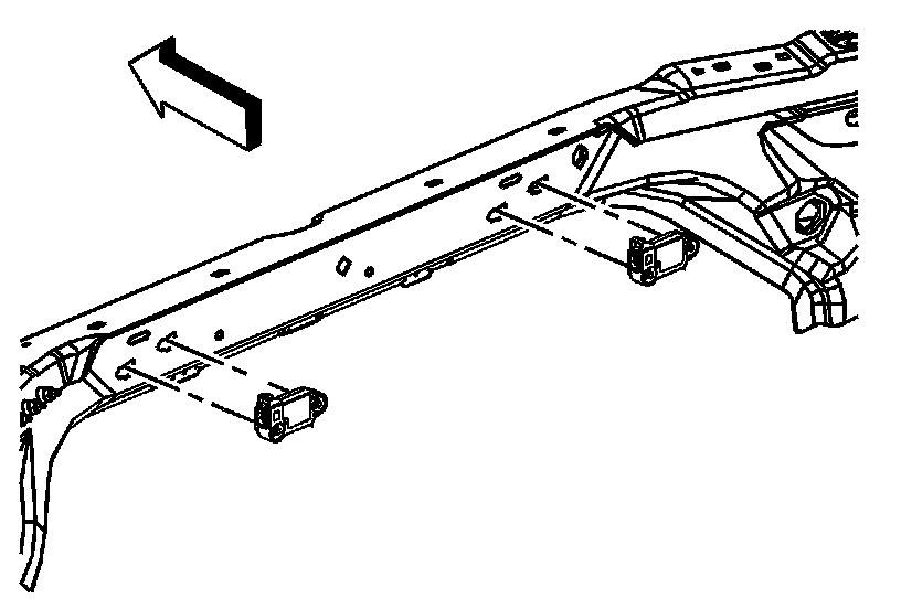 5. Remove the 2 integral bolts that retain the front end sensor to the frame front crossmember.