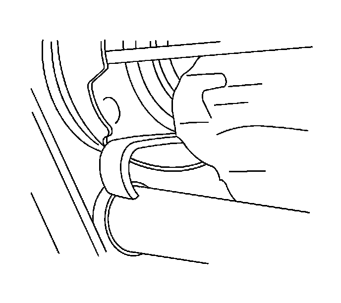 8. Install the rosebud fastener, holding the driver seat belt buckle wiring harness to the cushion frame.