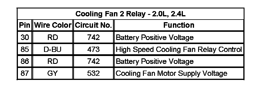 Cooling Fan 2 Relay - 2.0L, 2.4L: