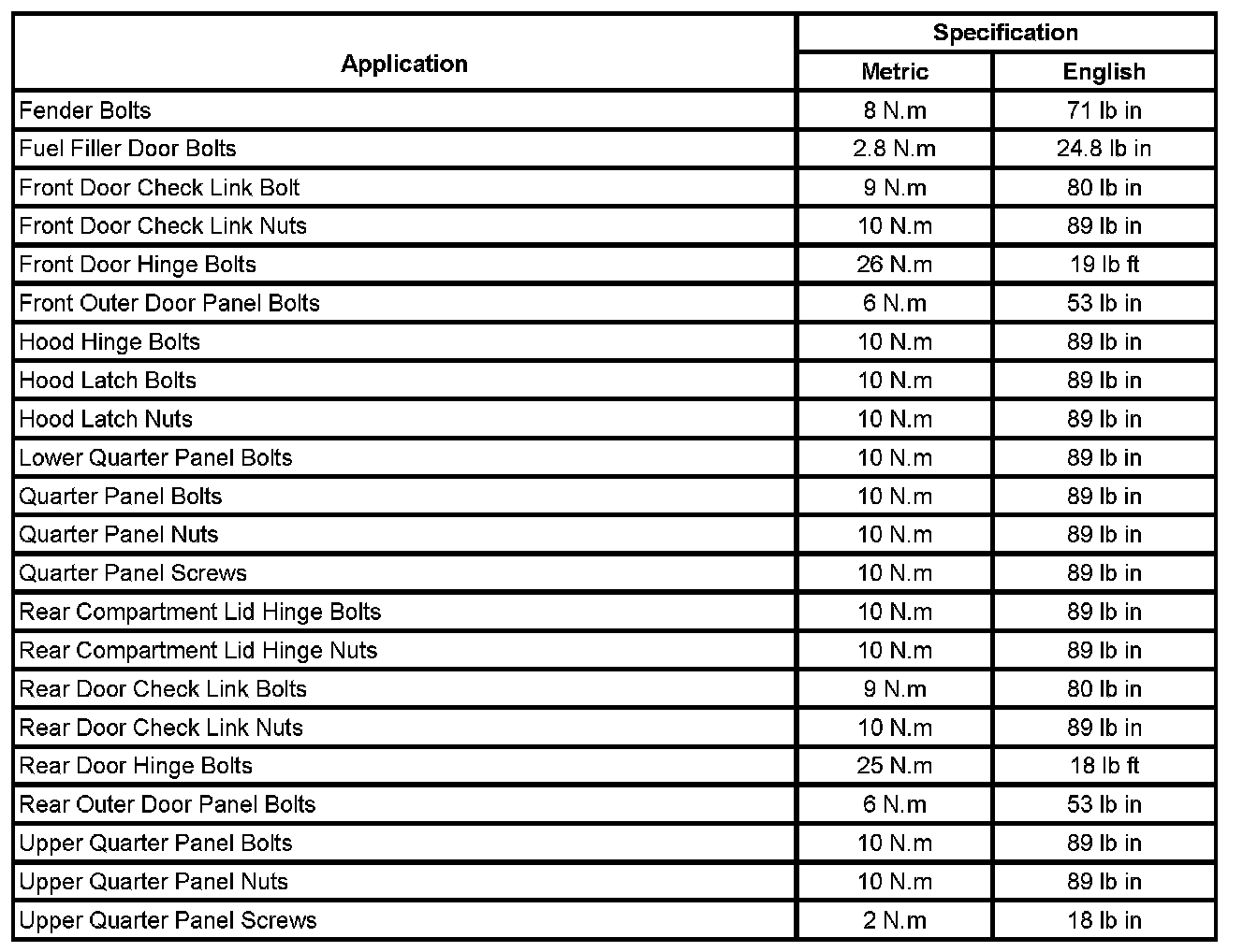 Fastener Tightening Specifications