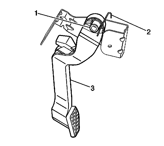 1. Install the clutch pedal (3), return spring (2), and pivot bushings (1).