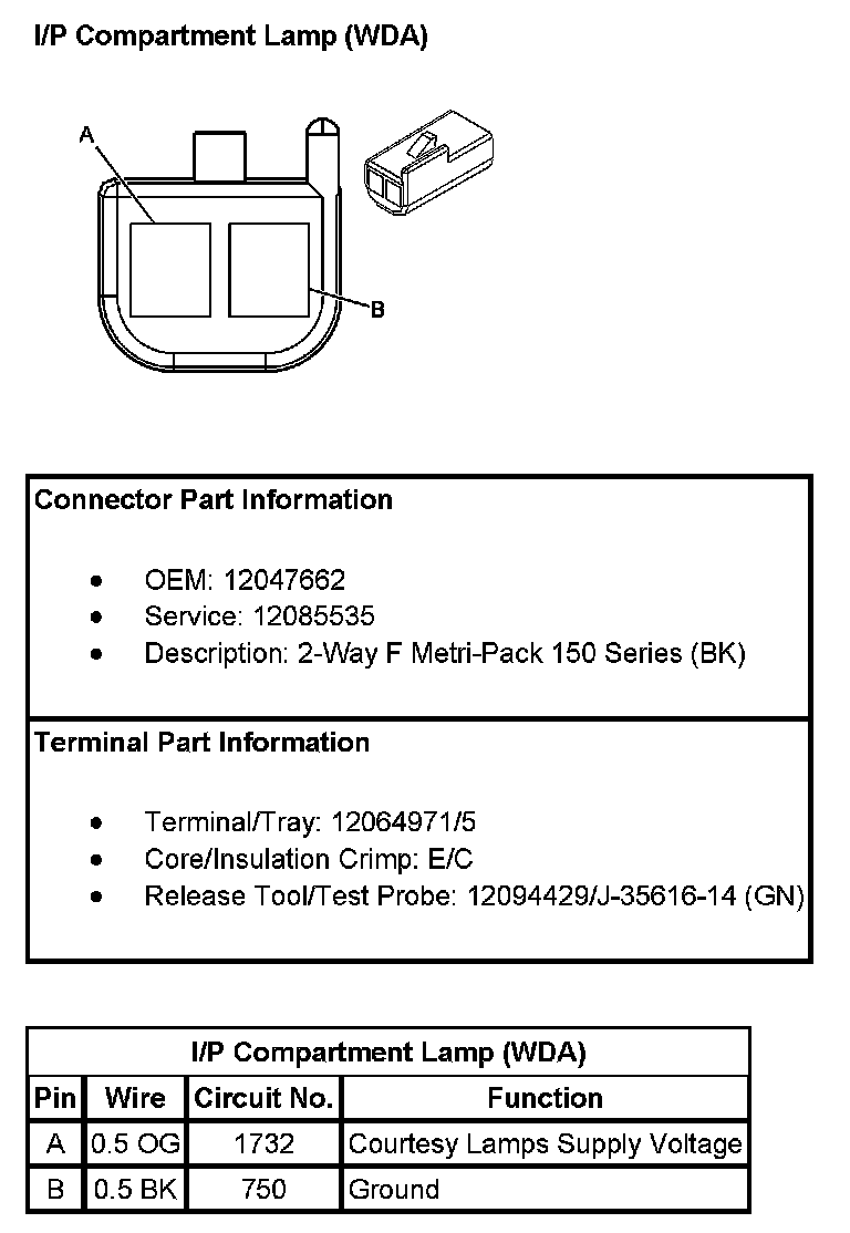 I/P Compartment Lamp (With RPO Code WDA):