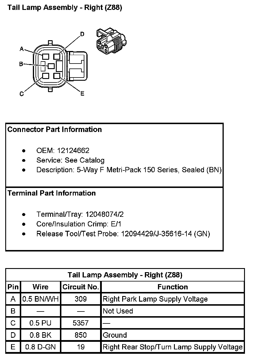 Tail Lamp Assembly - Right (With RPO Code Z88):