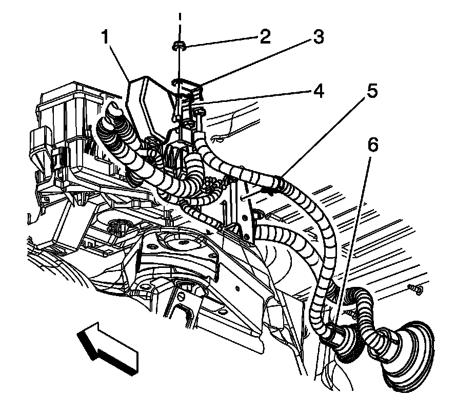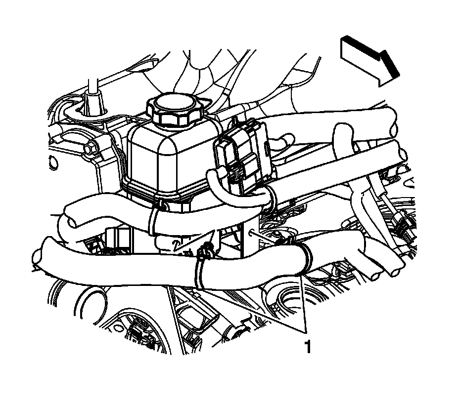 6. Remove the battery positive junction block cable clips (1) from the power steering reservoir bracket.