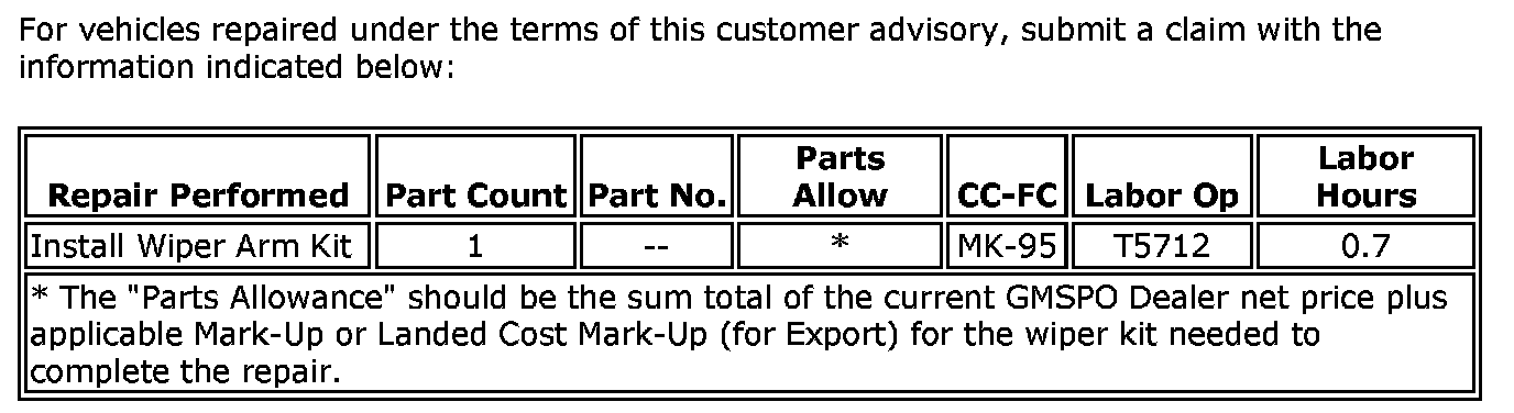Customers whose vehicles are registered in other states can choose to have the wiper crank arm, driver-side link, and crank arm nut replaced if they expect to drive in heavy snow and ice conditions. If the customer requests this service, dealers are to provide it without charge according to the bulletin.