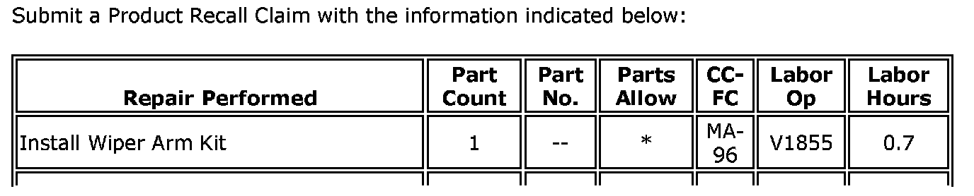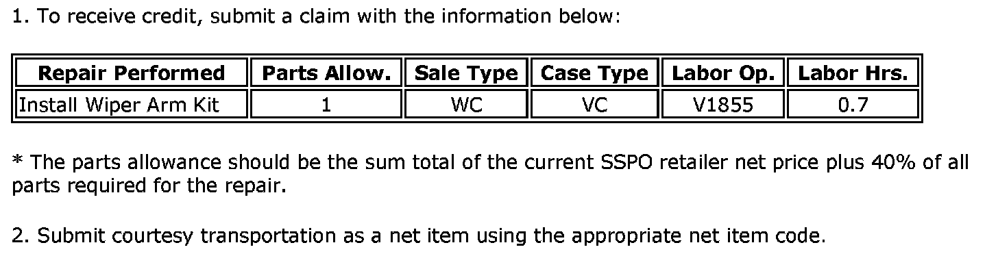 Dealers/retailers are to install a new wiper crank arm, driver's side link, and crank arm nut.