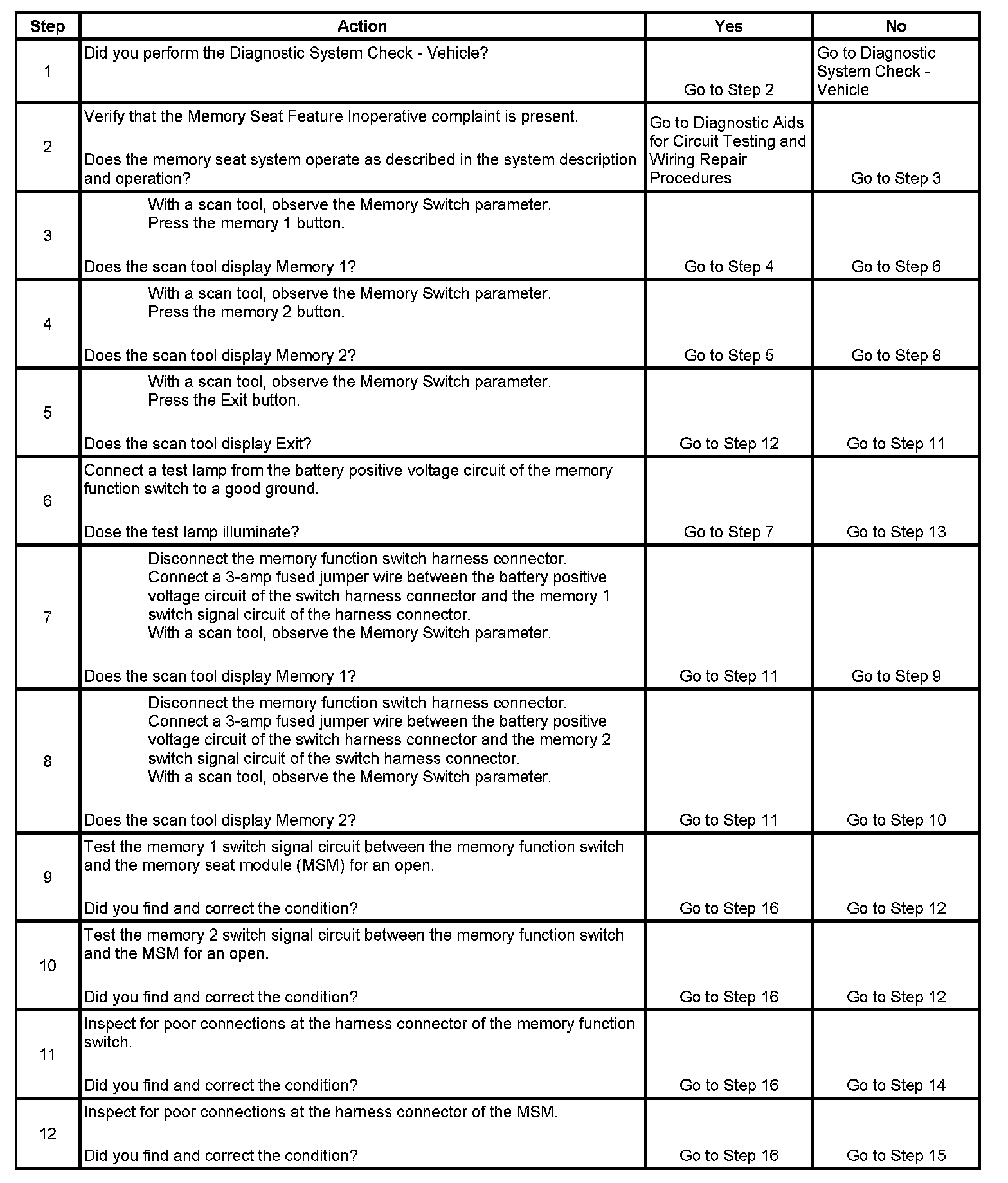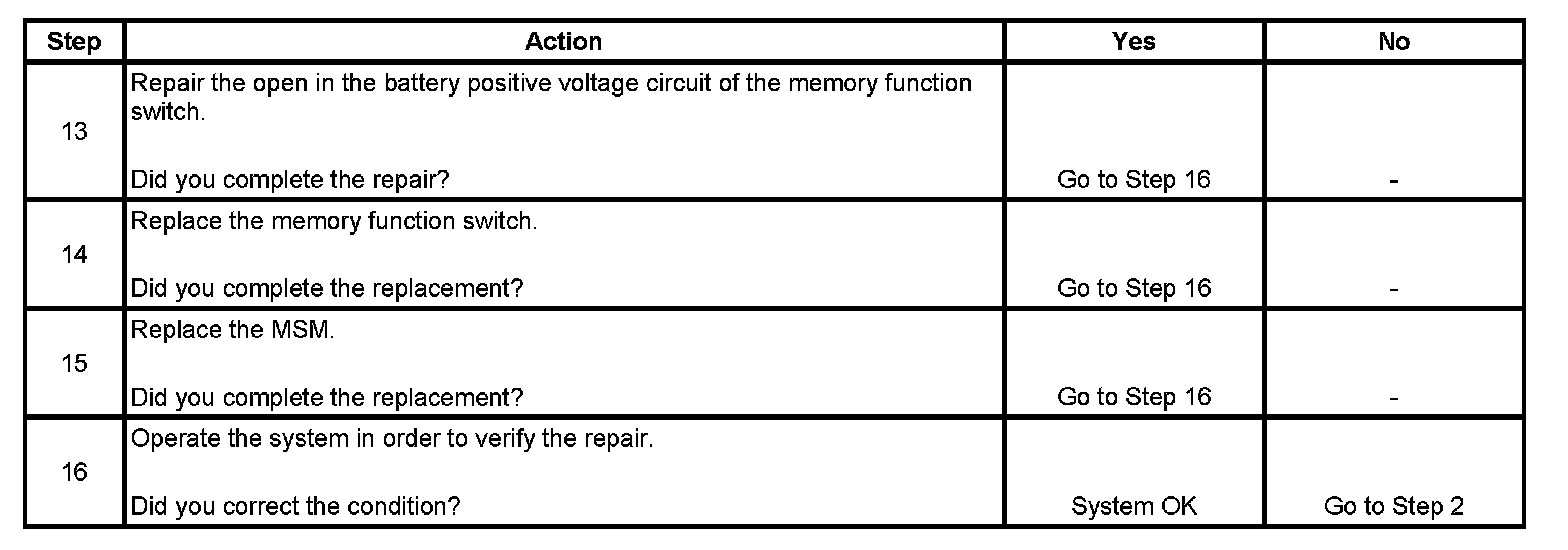 Memory Seat Feature InoperativeTest DescriptionStep 1 - Step 12: