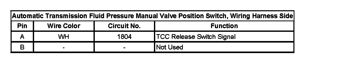 Automatic Transmission Fluid Pressure Manual Valve Position Switch, Wiring Harness Side