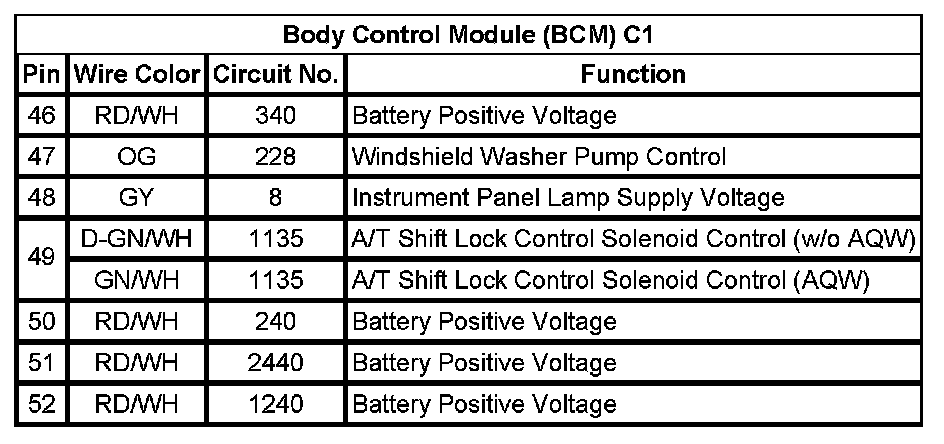 Body Control Module (BCM) C1 (Pin 46 To 52):