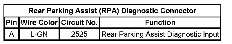 Rear Parking Assist (RPA) Diagnostic Connector
