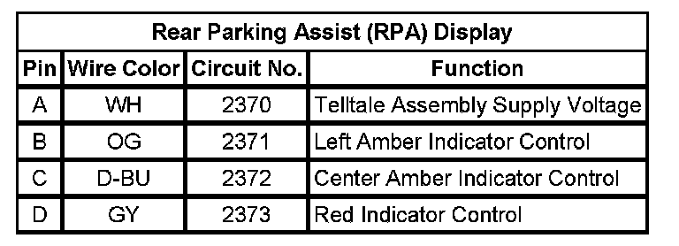 Rear Parking Assist (RPA) Display