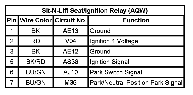Sit-N-Lift Seat/Ignition Relay (AQW)