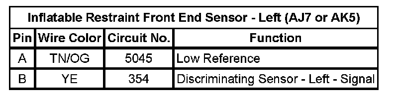 Inflatable Restraint Front End Sensor - Left (AJ7 or AK5)