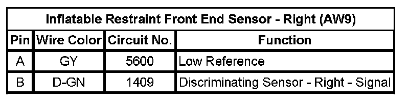 Inflatable Restraint Front End Sensor - Right (AW9)