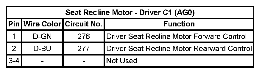 Seat Recline Motor - Driver C1 (AG0)
