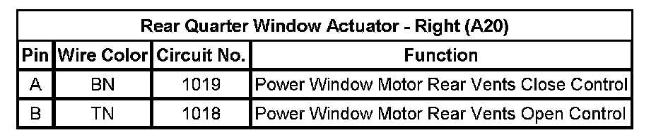 Rear Quarter Window Actuator - Right (A20)
