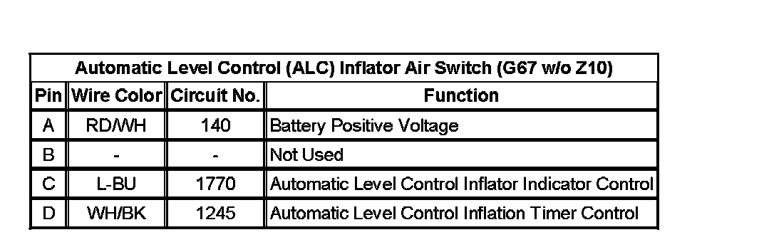 Automatic Level Control (ALC) Inflator Air Switch (G67 w/o Z10):