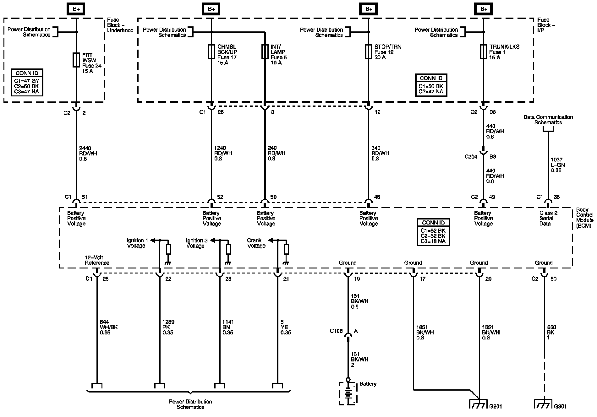 Locations: The locations for the Connectors, Grounds, Splices, and Grommets shown within these diagrams can be found via their numbers at Vehicle Locations. Locations
