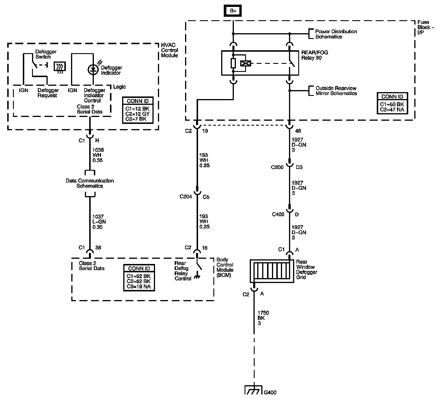 Defogger SchematicsLocations: The locations for the Connectors, Grounds, Splices, and Grommets shown within these diagrams can be found via their numbers at Vehicle Locations.
