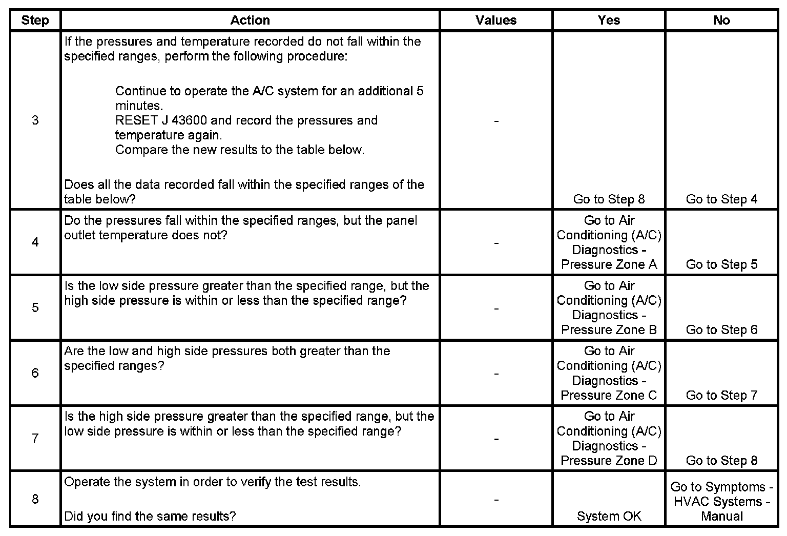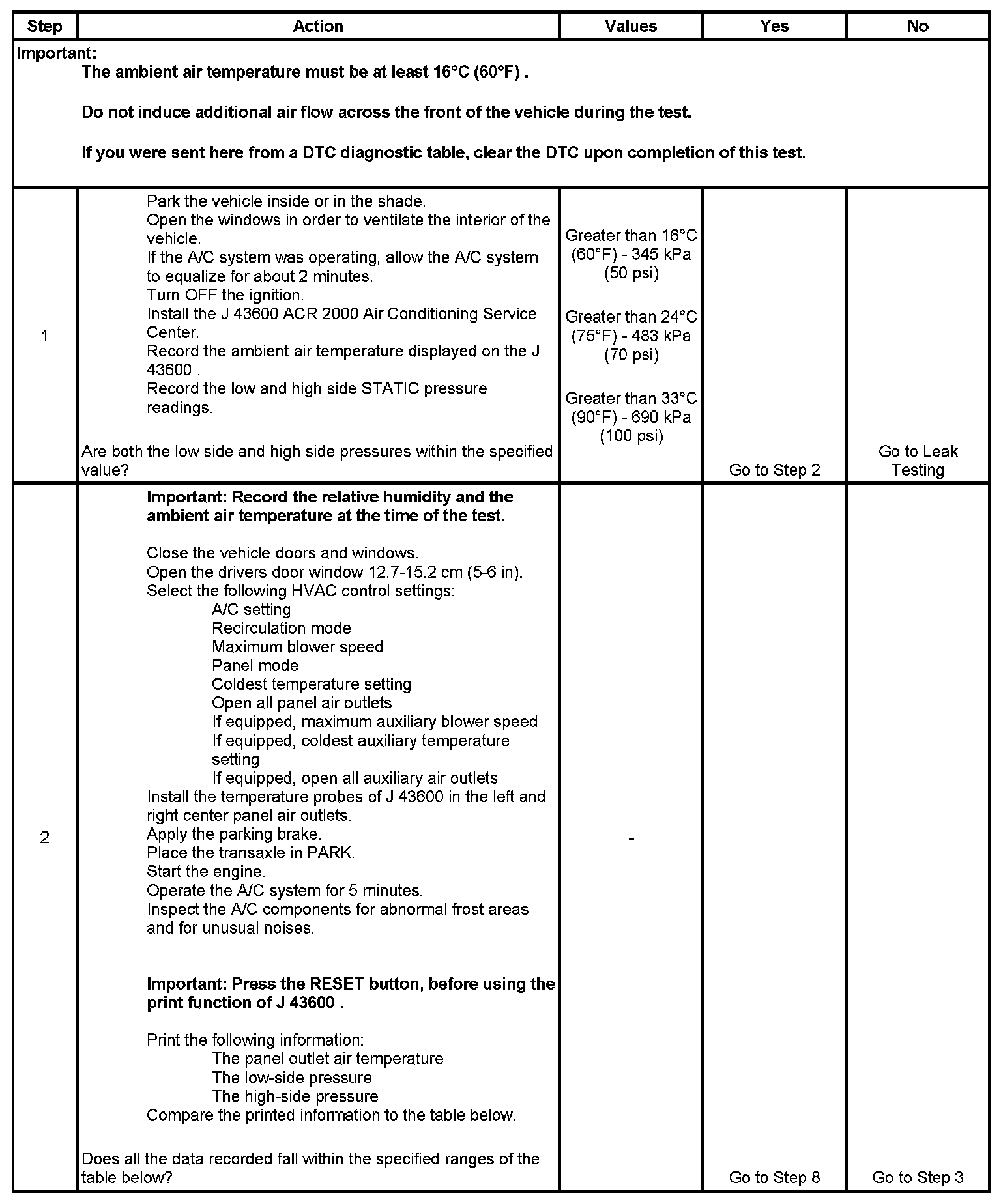 1. This step determines if the A/C system has at least the minimum refrigerant charge required to operate the system without damage.