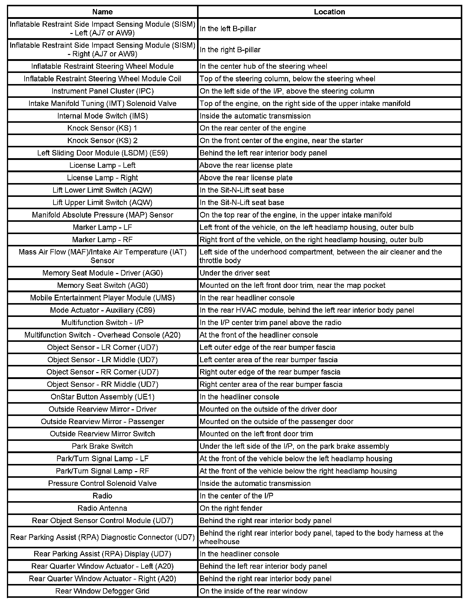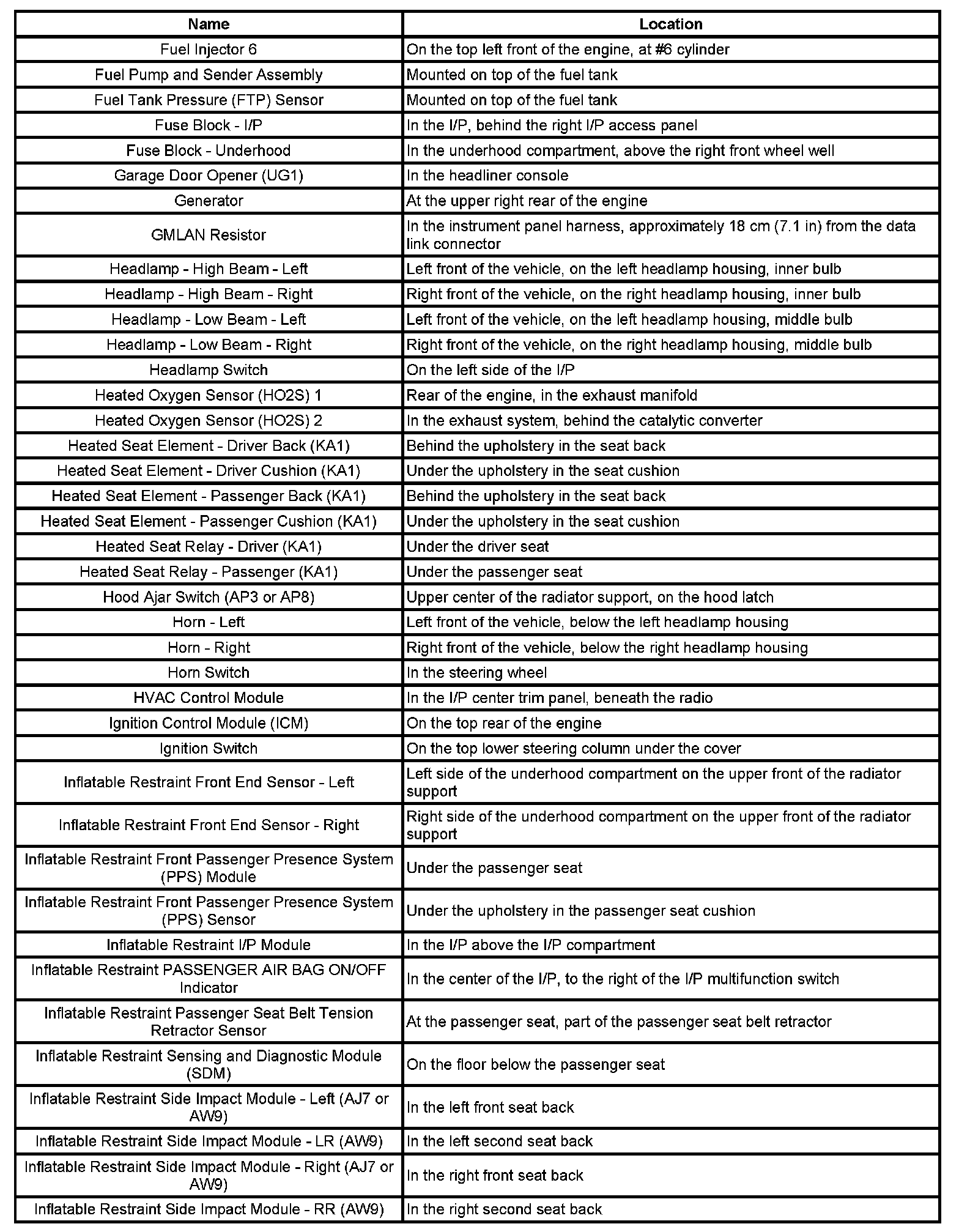 Component Locations