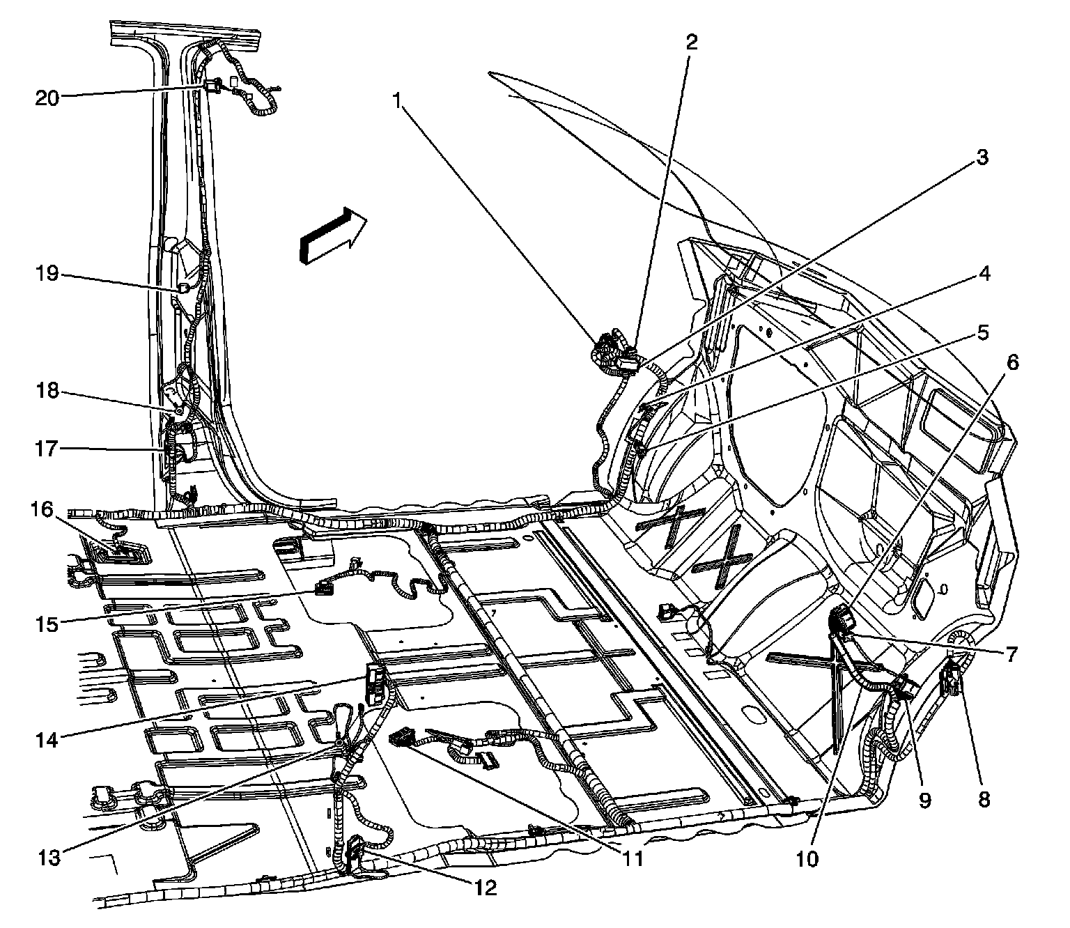 7 - C305 Fuel Tank Harness and Rear Cross-Car Jumper Harness to Body Harness