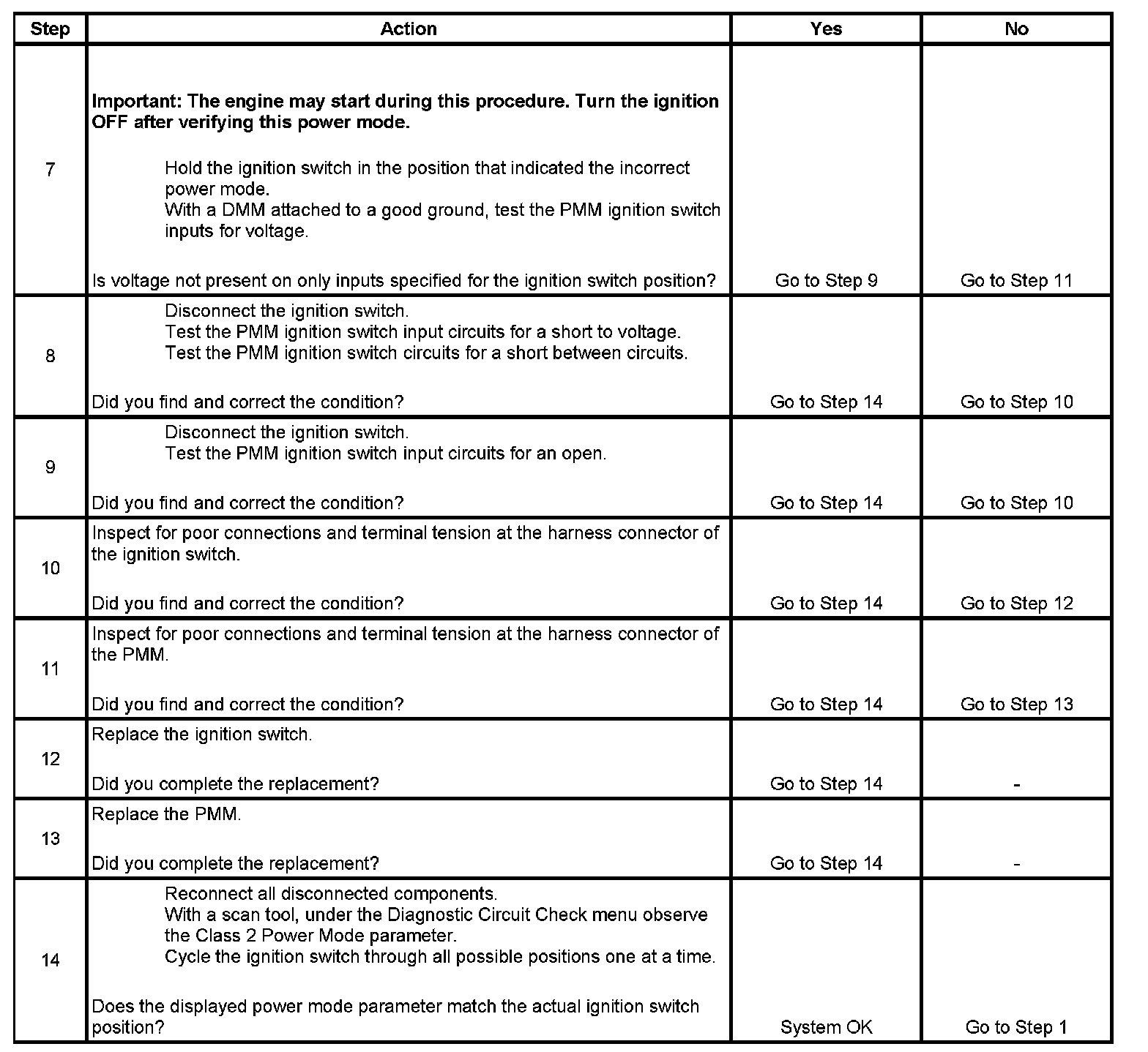 7. This step tests for no battery voltage on the required signal circuits.