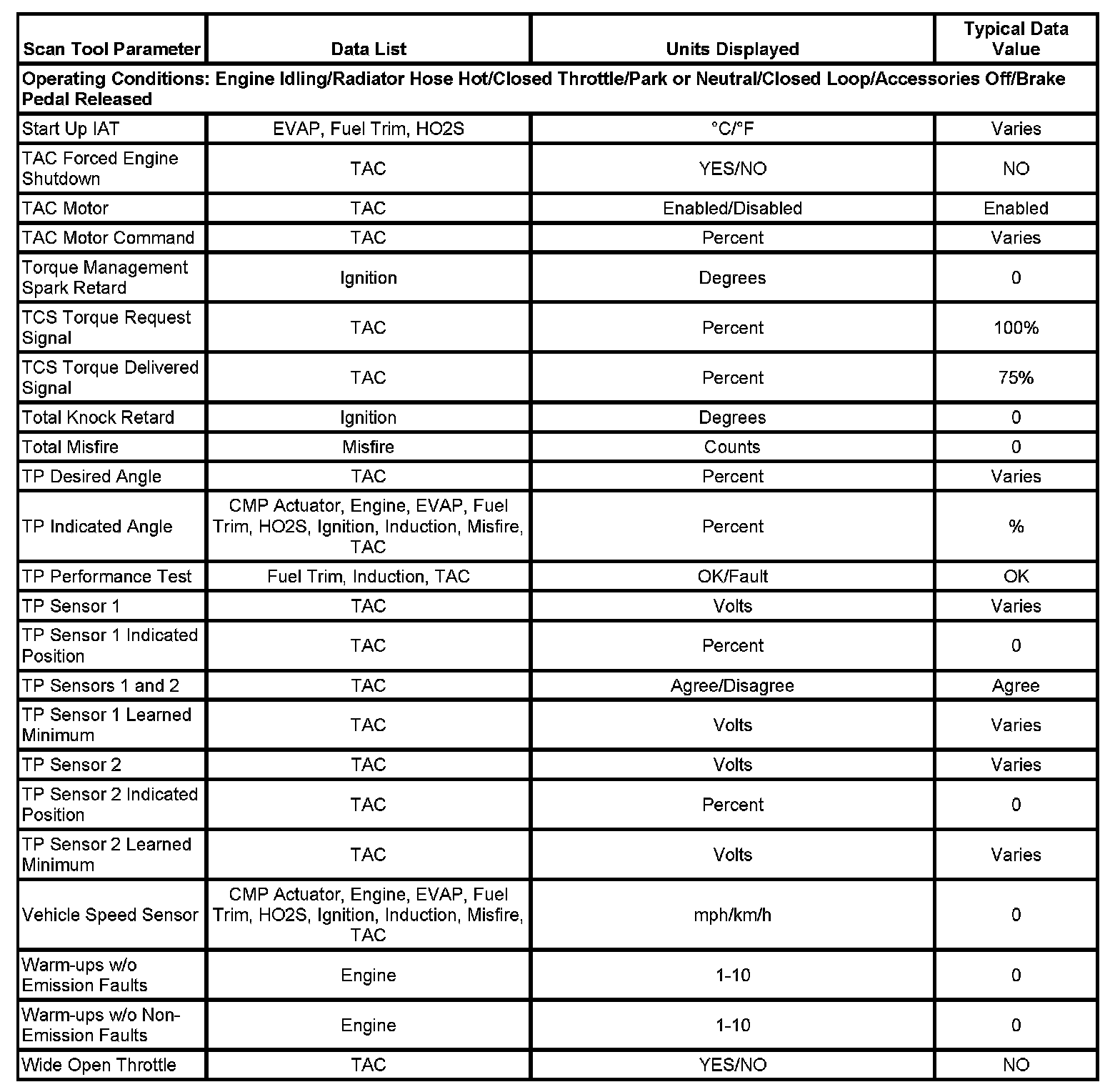The column labeled Data List indicates where a parameter can be located on the scan tool. Refer to the scan tool operating data for the exact locations of the data lists. The following is a description of each term listed: