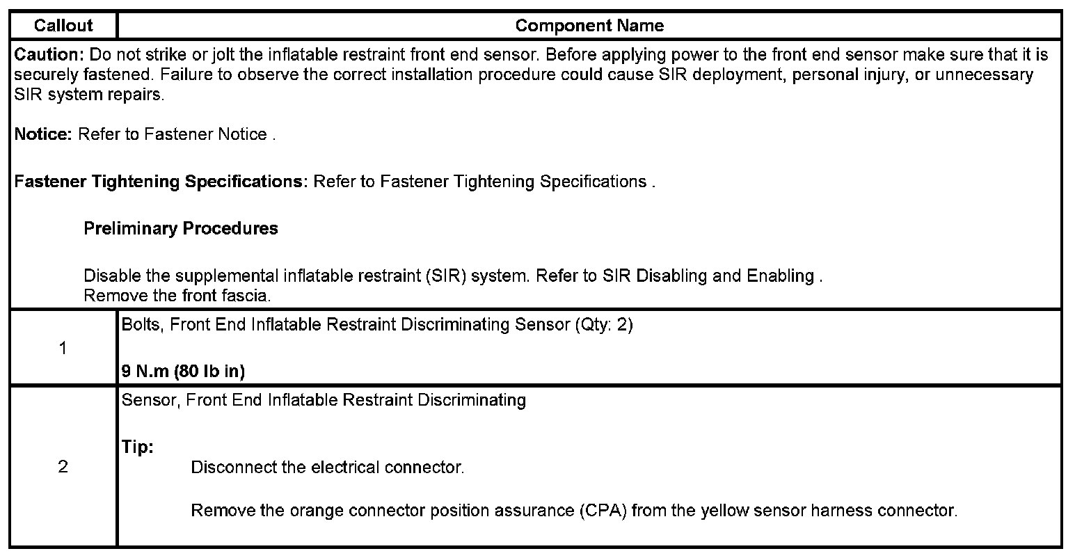 Inflatable Restraint Front End Sensor Replacement