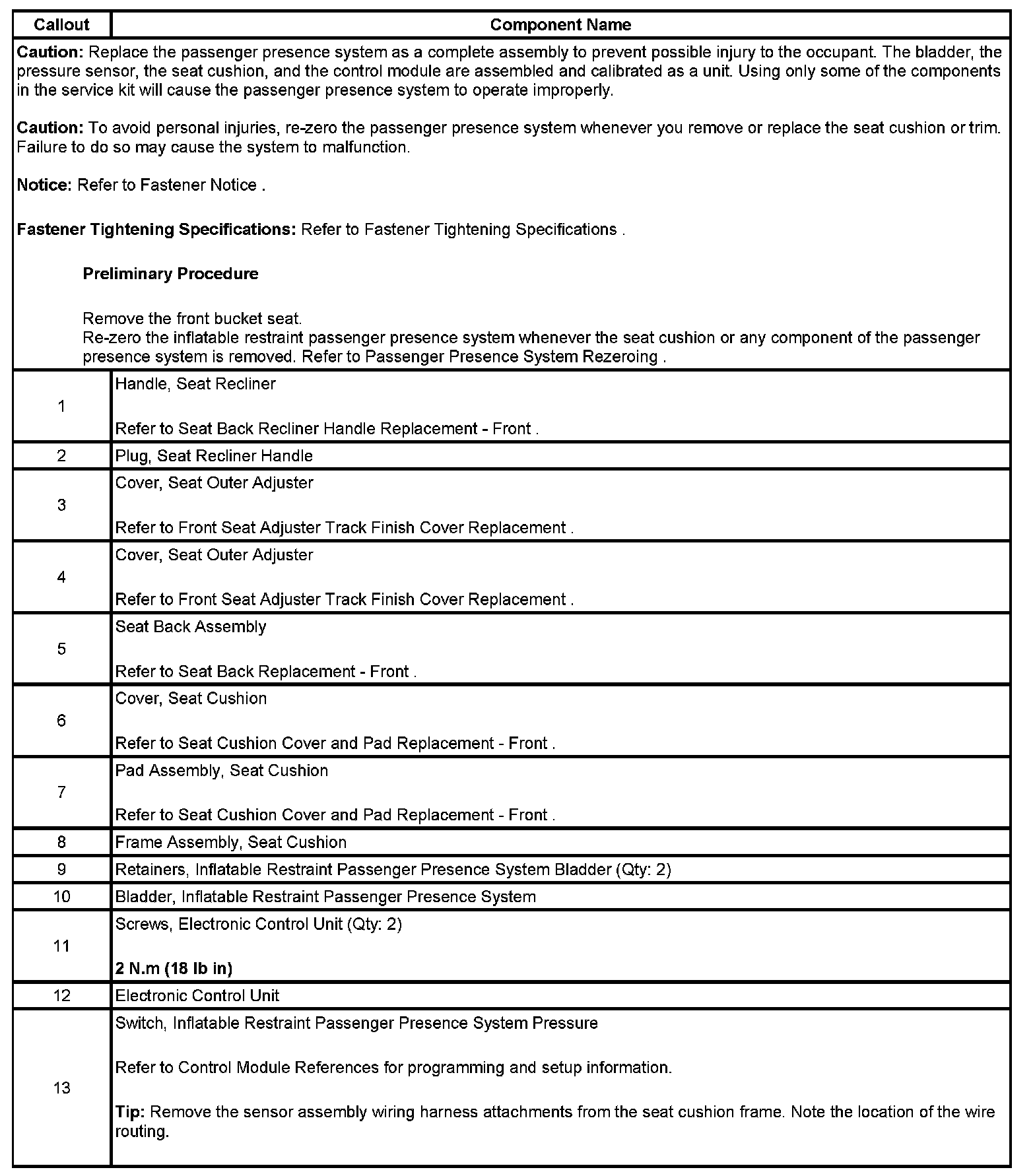 Inflatable Restraint Passenger Presence System Replacement - Front