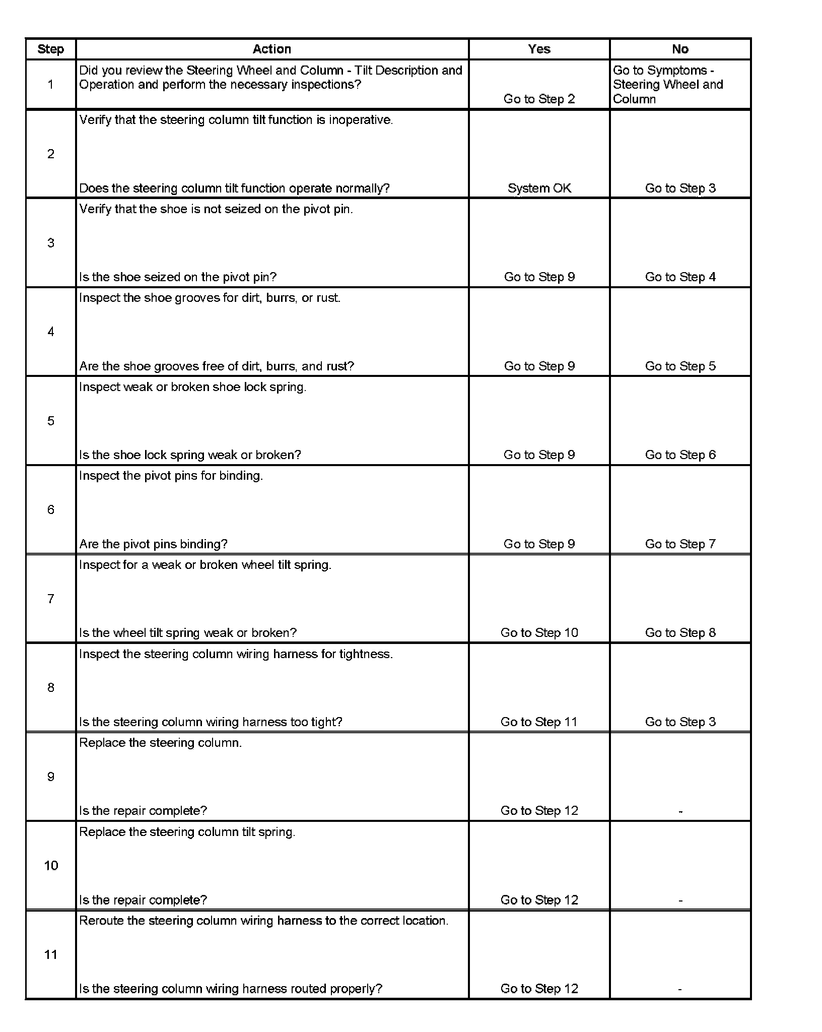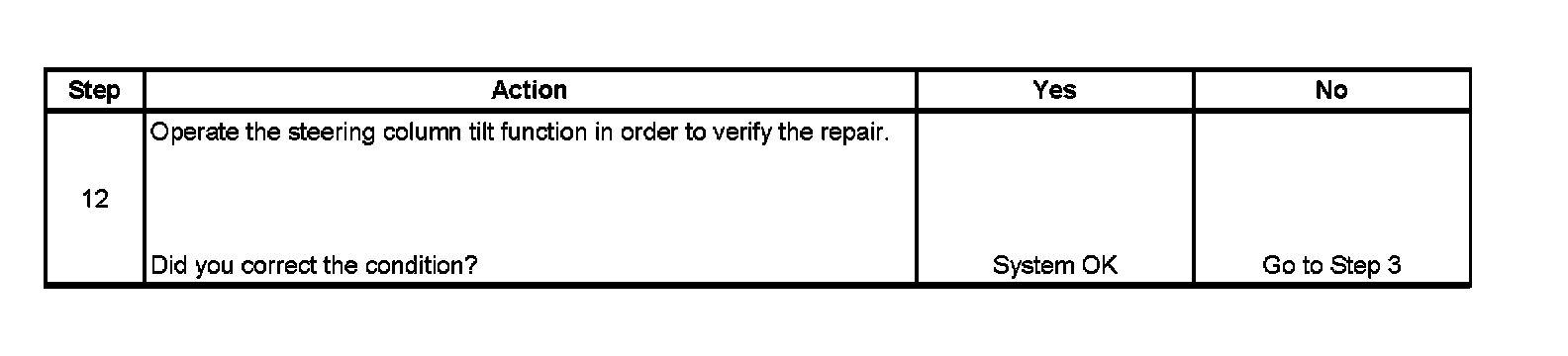Steering Column Tilt Function Inoperative