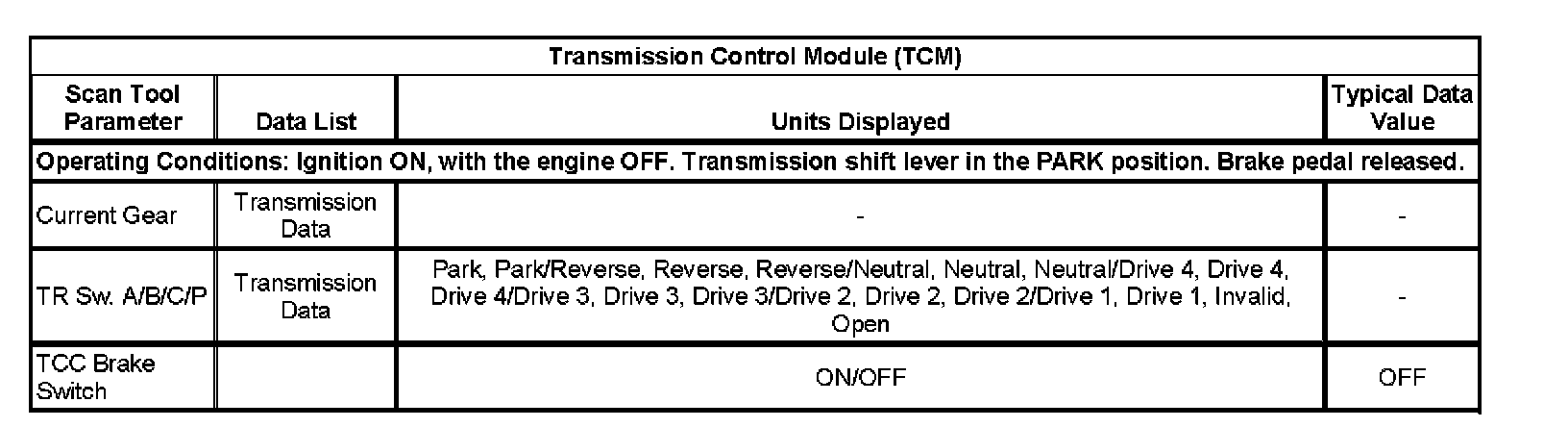 Transmission Control Module (TCM):