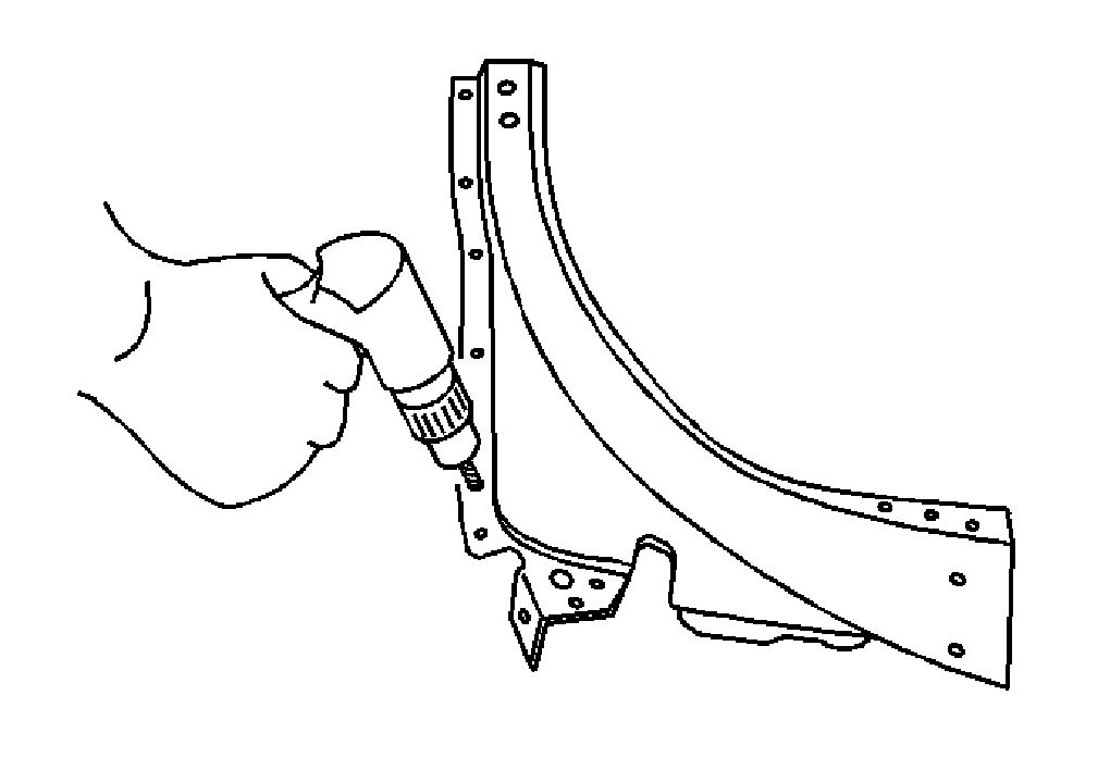 IMPORTANT: If the location of the original plug weld holes can not be determined, or if structural weld-thru adhesive is present, space the plug weld holes every 40 mm (1 1/2 in) apart.