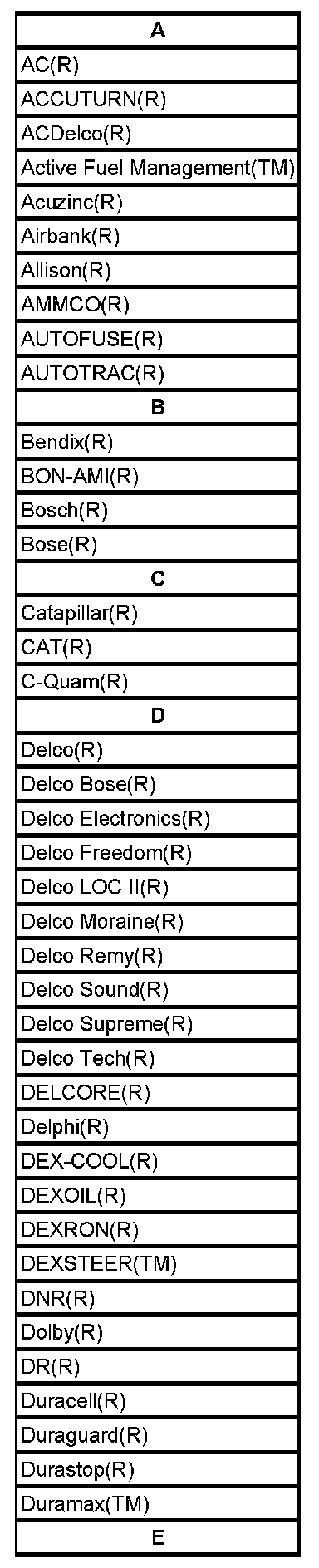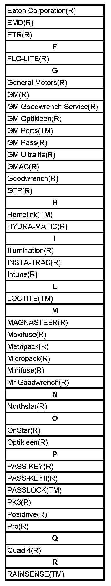 Registered and Non-Registered TrademarksListed below are Registered Trademarks ((R)) or Non-Registered Trademarks ((TM)) which may appear in this Service Data.