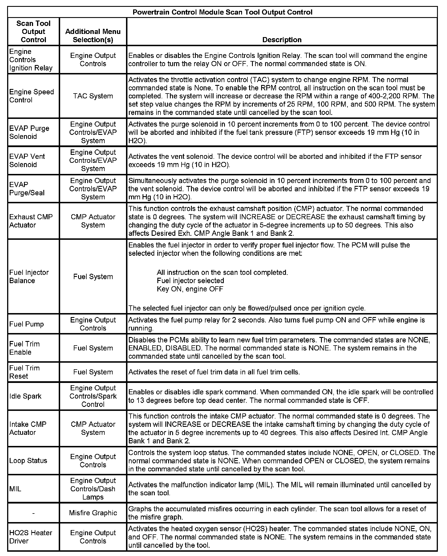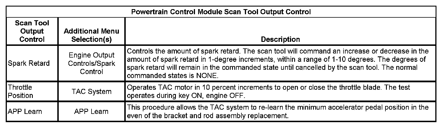 Scan Tool Output Controls