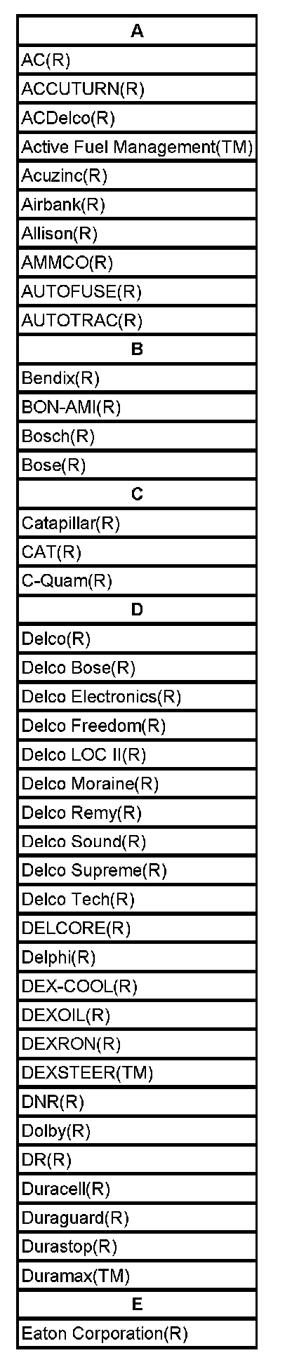 Listed below are Registered Trademarks ((R)) or Non-Registered Trademarks ((TM)) which may appear in this service manual.