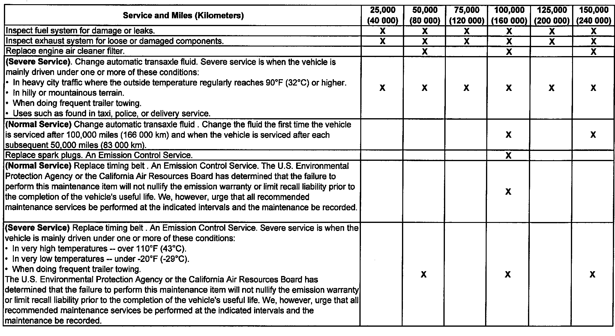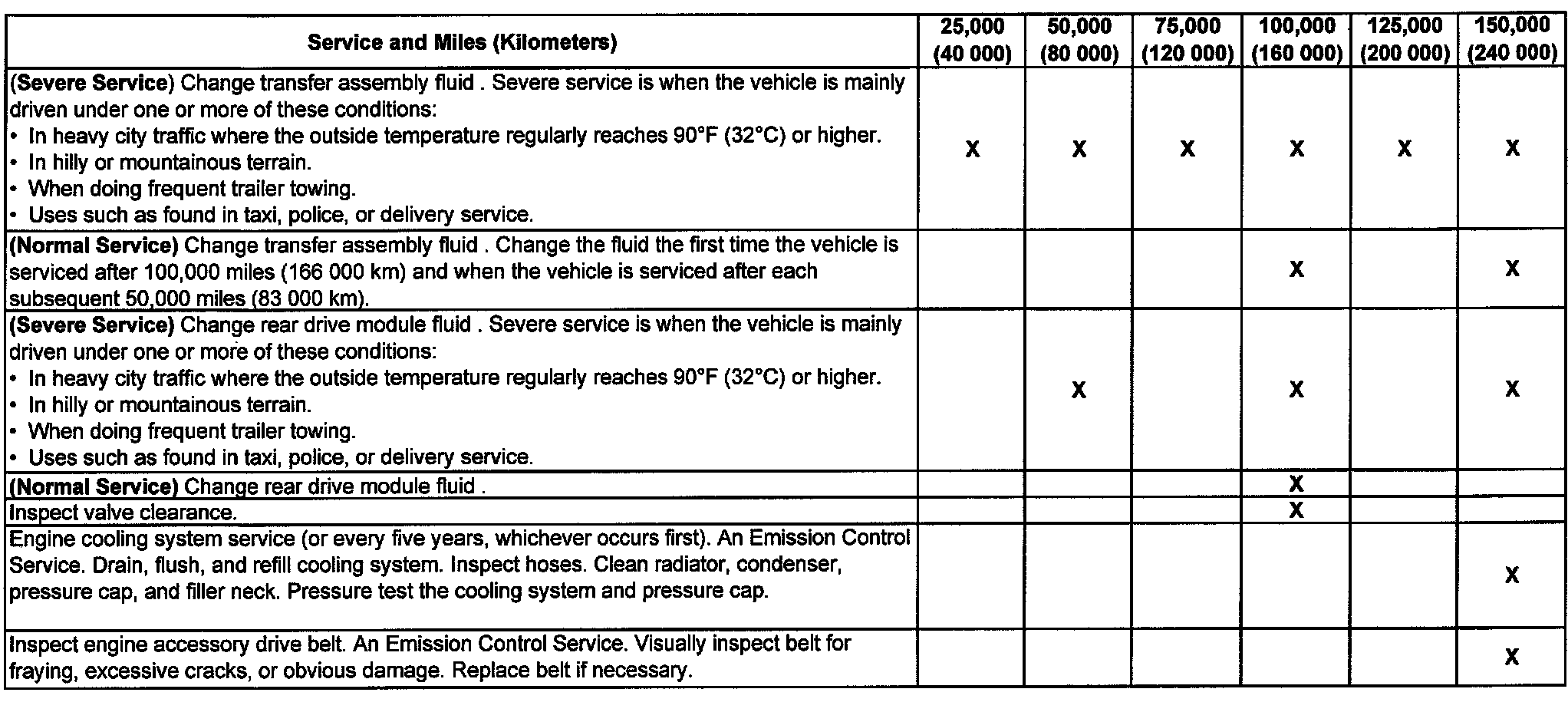 service (I or II) after the indicated miles (kilometers) shown for each item.