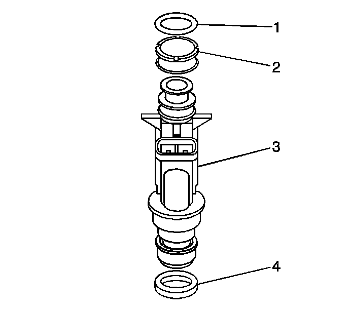 Important: Visually inspect the fuel injector in order to determine if the upper O-ring was also removed. If the upper O-ring (1) is not removed, remove the O-ring from the fuel rail assembly.