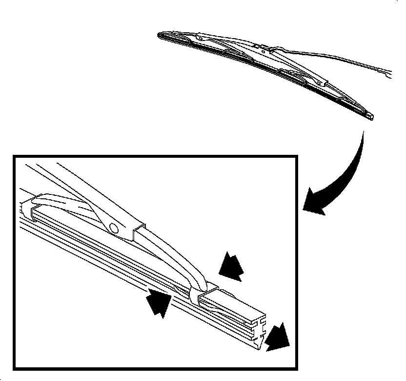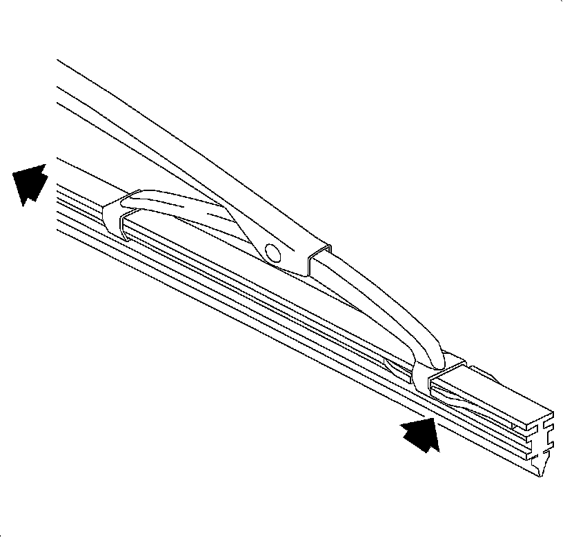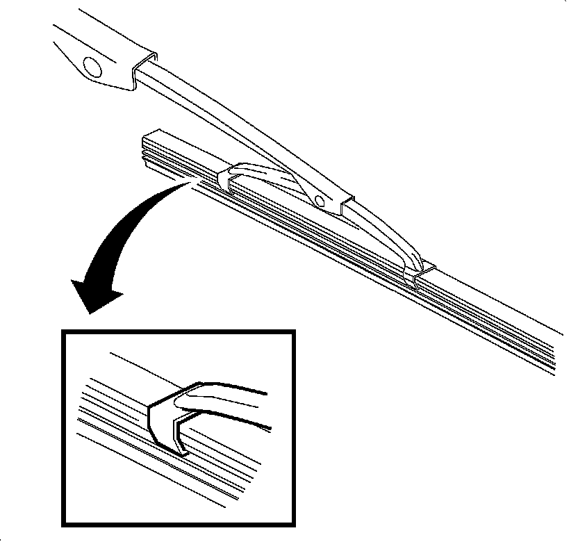 Notice: If the metal clip on the wiper blade insert is not completely engaged to the heel claw, the wiper blade insert will not be sufficiently retained and may result in windshield damage.