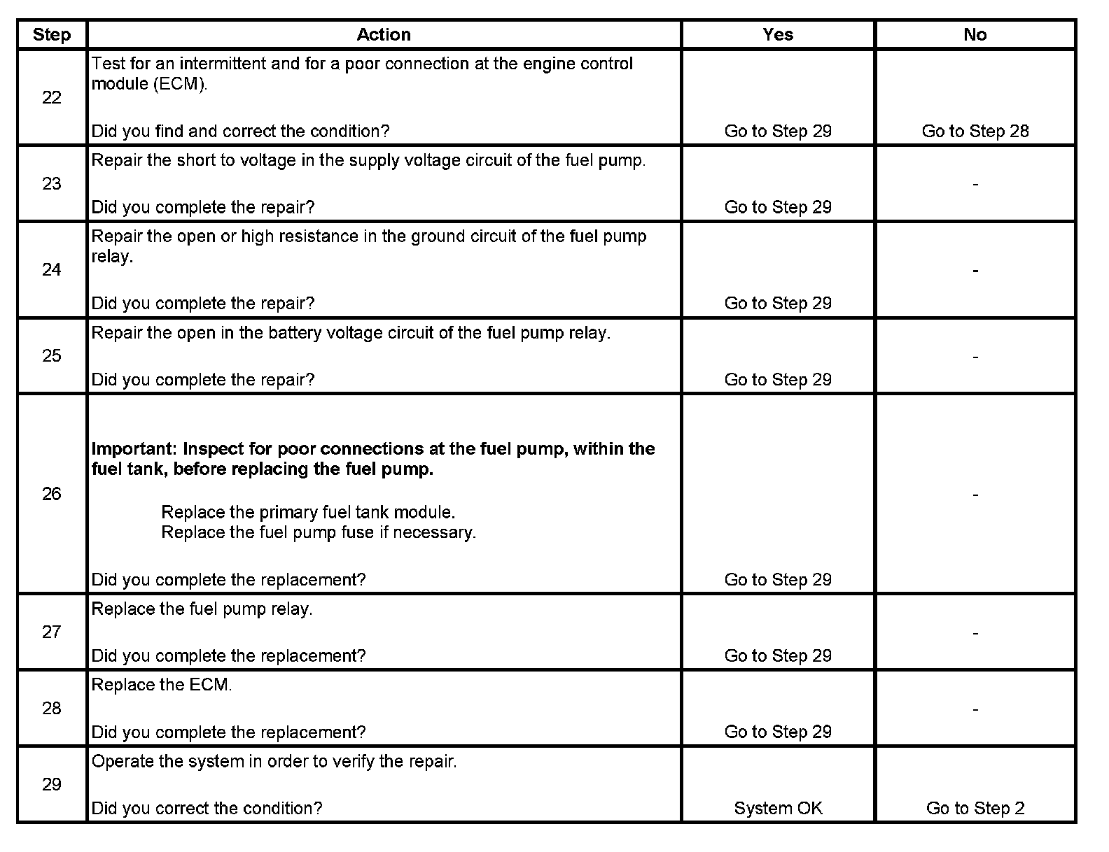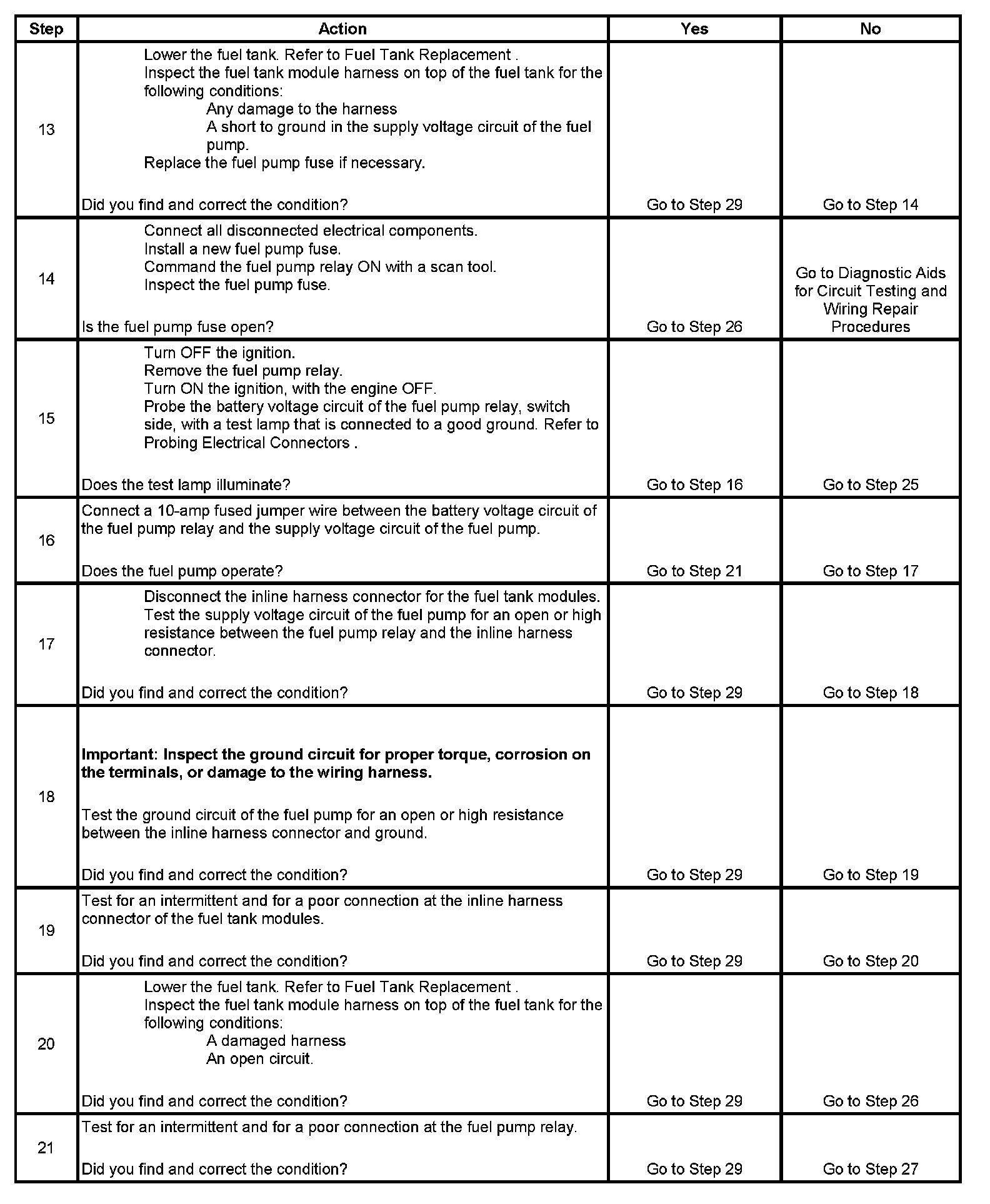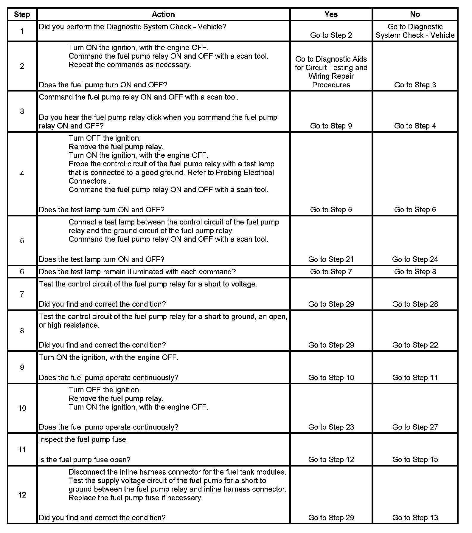 Fuel Pump Electrical Circuit Diagnosis