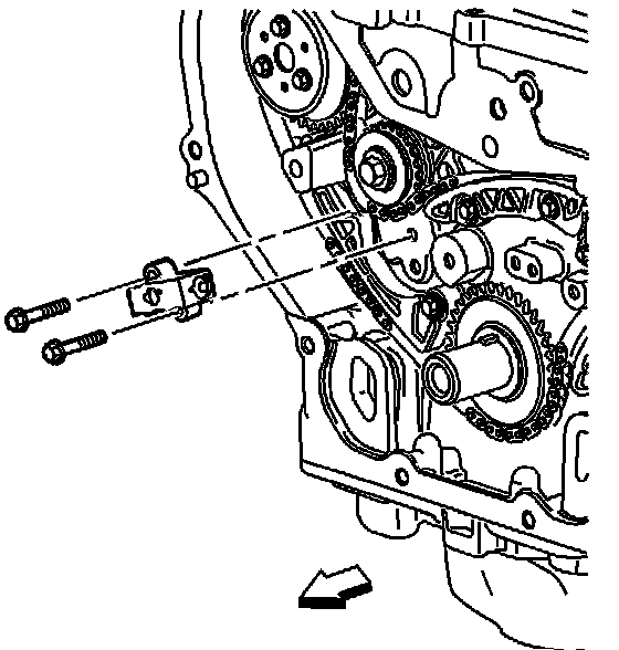 1. Remove the engine front cover. Refer to the appropriate Engine Front Cover Replacement procedure in SI to remove the engine front cover.
