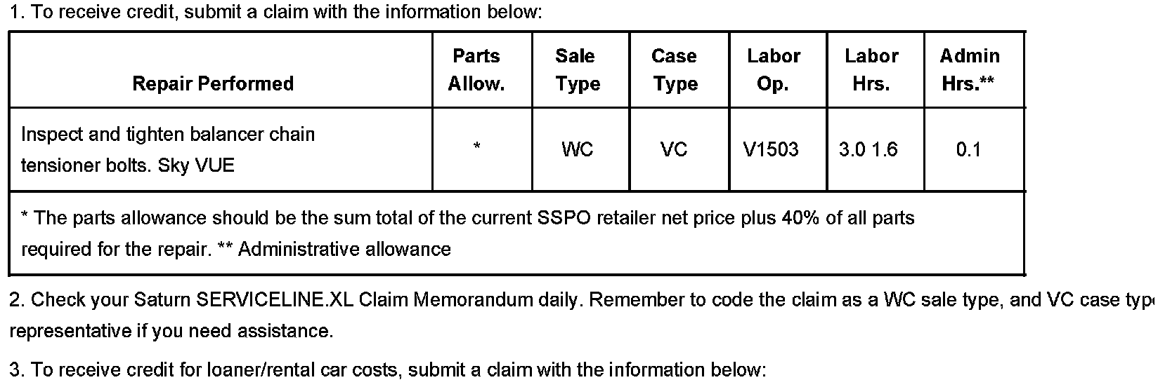Claim Information - Saturn US Only